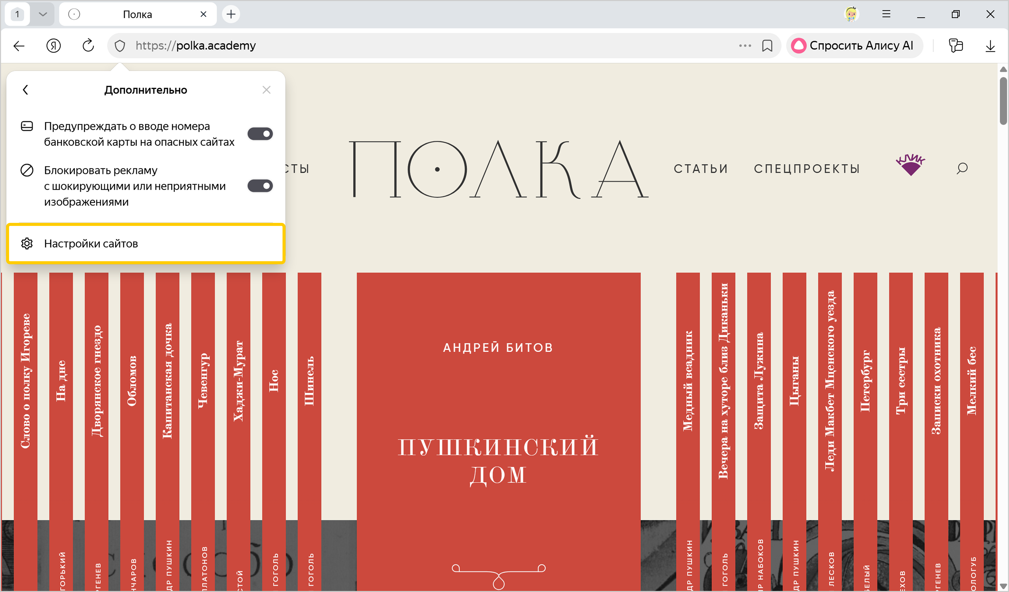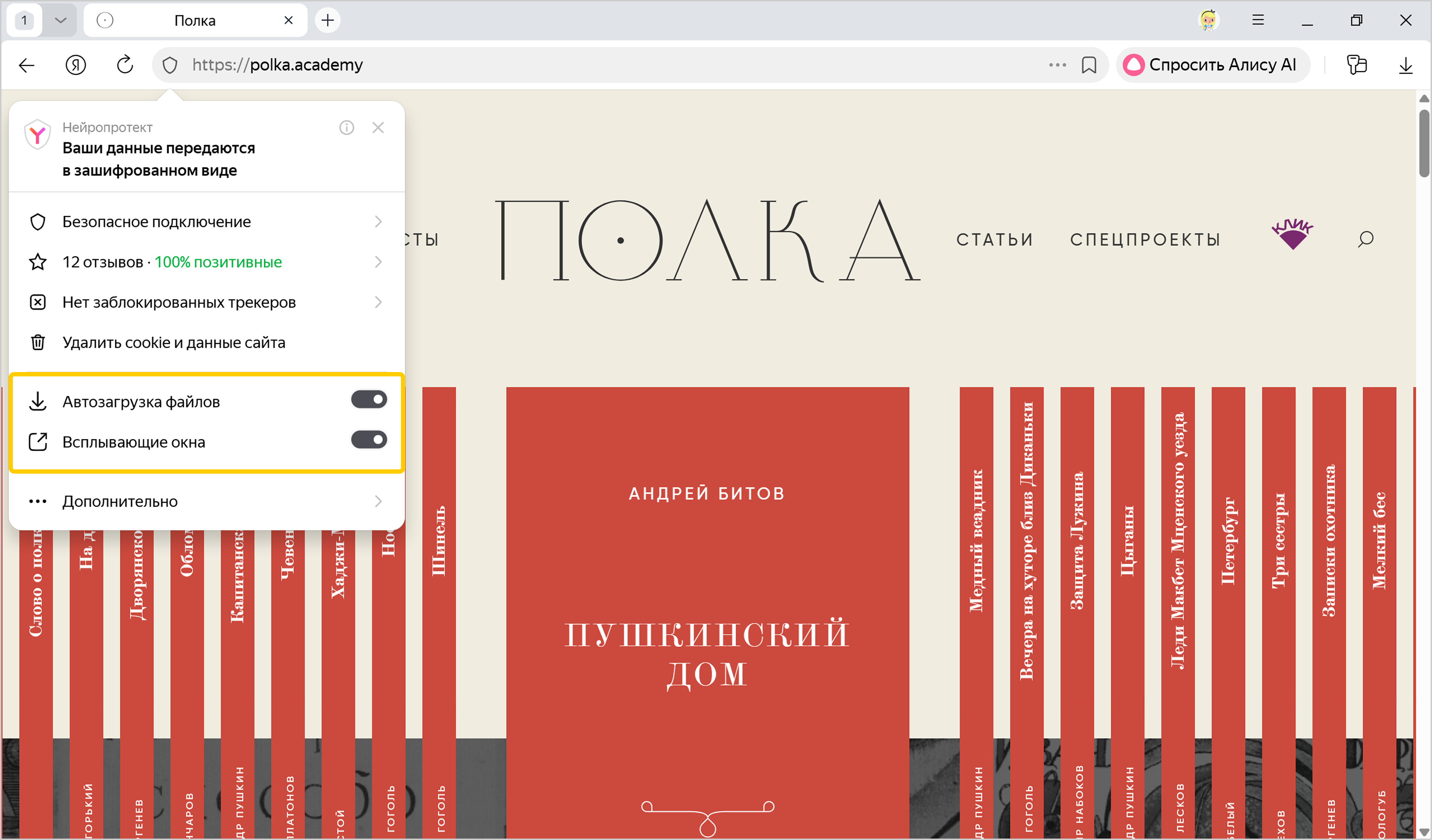 Блокировать — по умолчанию всплывающие окна блокируются, так как загромождают экран и часто используются для баннерной рекламы. Если сайт пытается открыть всплывающие окна, в Умной строке появляется значок Всплывающие окна отключены.