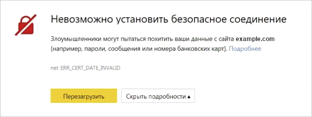 Ошибка ERR_CERT_AUTHORITY_INVALID