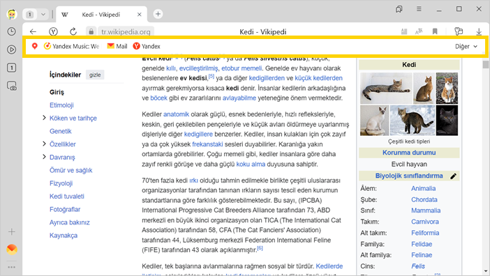 Yandex Browser’ı farklı cihazlarda eşitlediyseniz sol menüde cihaz adıyla klasörler görünecektir (ör. Akıllı Telefon veya Tablet). Ayrıntılı bilgi için Favorilerin eşitlenmesi bölümünü okuyun.