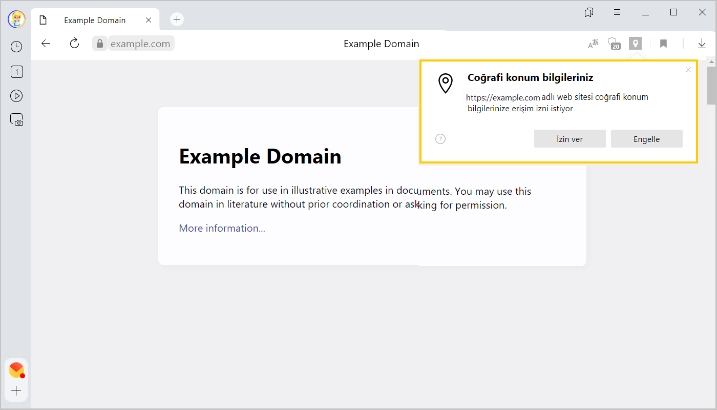 Sitenin konumunuzu belirlemesine izin verme veya konum belirlemeyi engelleme