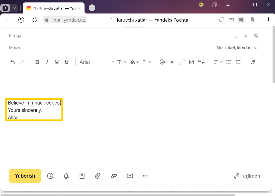 Brauzer kiritish shakllarida imloni tekshiradi (masalan, pochta bilan ishlaganda).