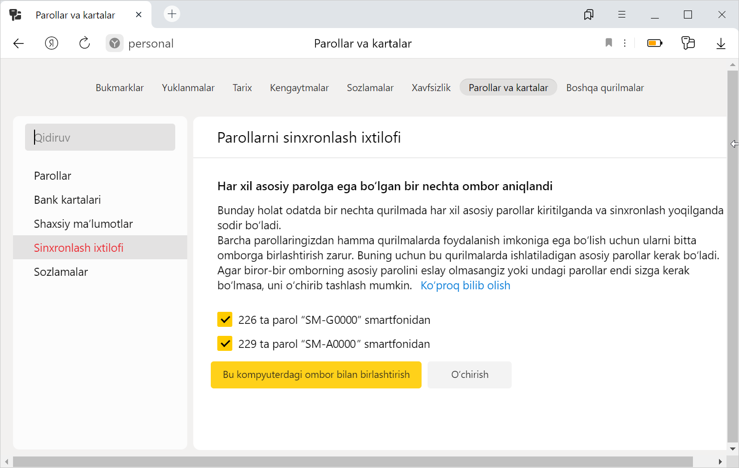 Boshqa qurilmadagi Yandex Brauzerda saqlagan parollaringizni kompyuterga o‘tkazish mumkin (kompyuter, smartfon yoki planshet).