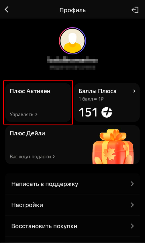 Попасть в личный кабинет подписки можно из приложений Яндекса: Музыка, Кинопоиск, Go, Карты. Для этого нажмите на фото профиля с яркой обводкой. Выберете в меню Плюс, а потом кнопку Управлять.