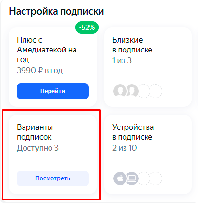 В Плюсе есть несколько вариантов подписок, они подробно описаны в разделе Тарифы в Плюсе.