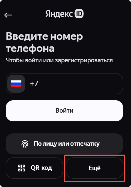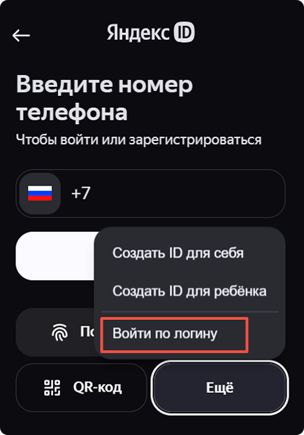 Выберите Почта или Ещё → Войти по логину.