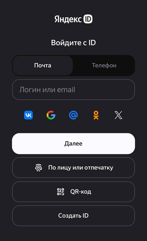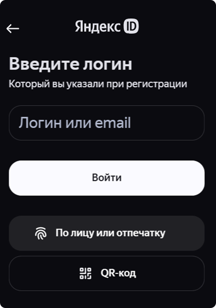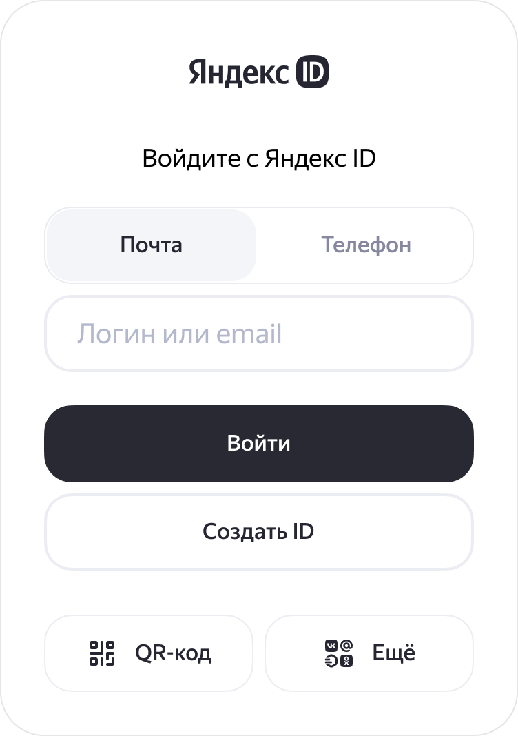 По умолчанию вход по QR в приложениях Яндекса включен. Управлять опцией можно на вкладке Безопасность в разделе Способ входа. Для способов Одноразовый пароль и Пароль + одноразовый пароль есть свои инструкции для входа по QR-коду.