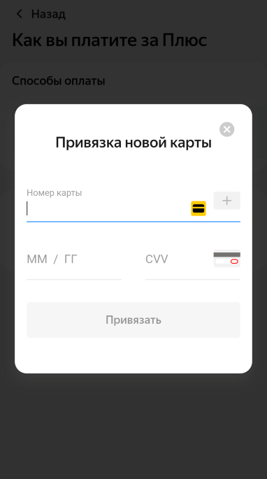 Введите реквизиты карты — и кнопка внизу экрана станет активной. Нажмите Привязать.