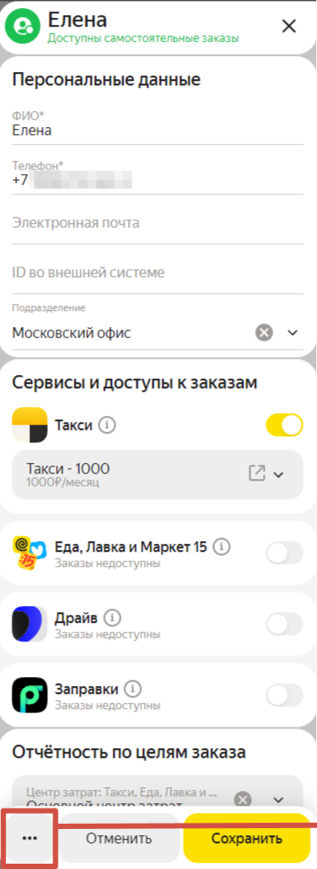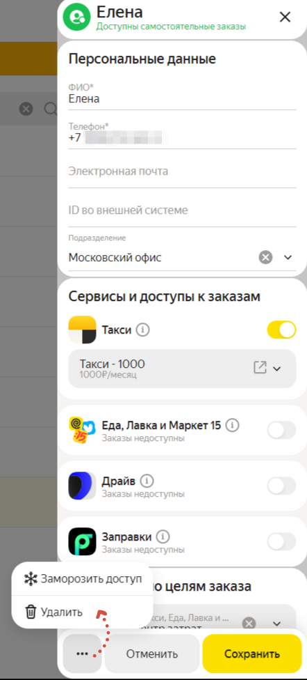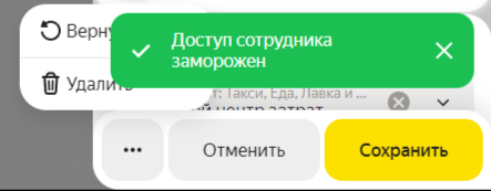Сотруднику можно заморозить доступ для использования сервиса.