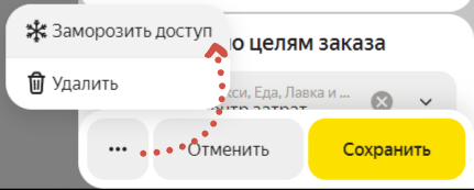 Подтвердить действие кнопкой Заморозить доступ.