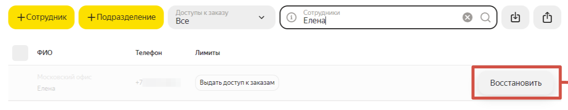 Восстановить сотрудника