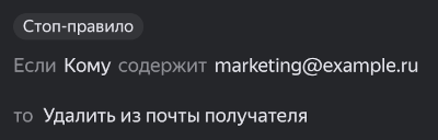 Например, вы задали правило, согласно которому письмо, отправленное на определенную рассылку, должно удалиться в ящике получателя: