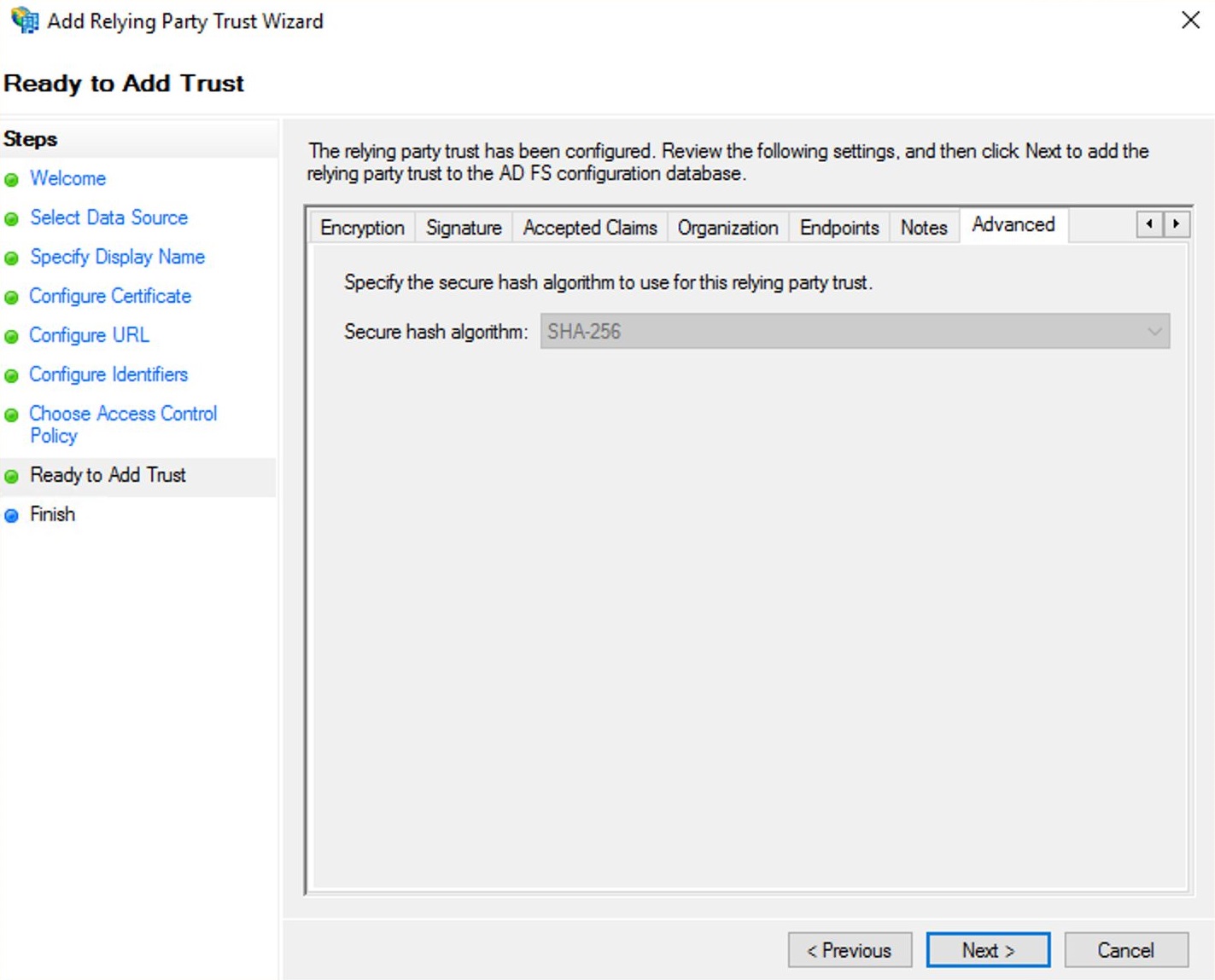 Нужное значение находится в поле Federation Service identifier.
