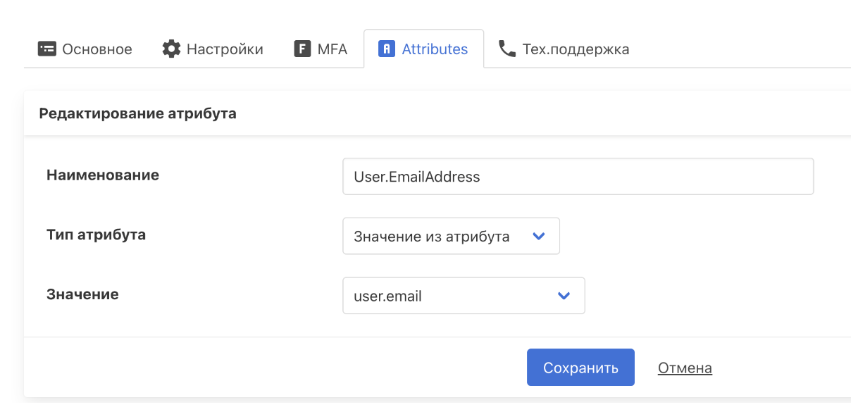 В поле Значение NameID выберите идентификатор, который вы будете использовать в качестве NameID при SAML SSO: Имя пользователя или Адрес электронной почты.