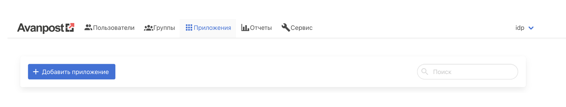 В разделе Приложения веб-интерфейса Avanpost FAM выберите созданное на шаге 1 SAML-приложение.