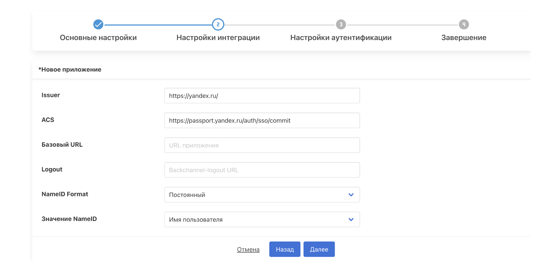 Основные параметры для настройки единого входа можно получить по ссылке вида