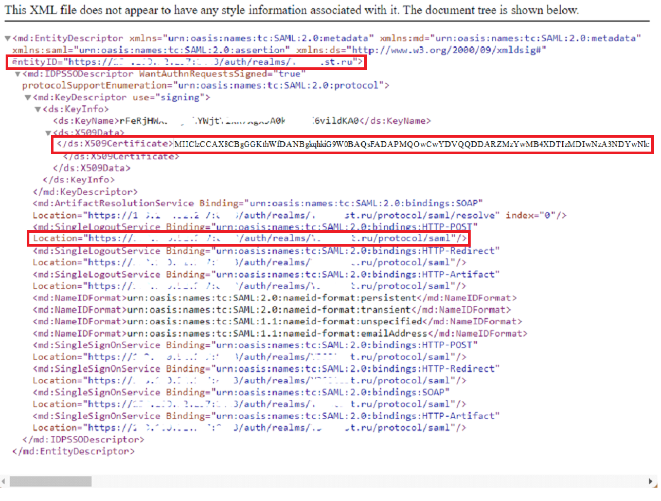 Получить можно так же, как и URL страницы входа. Нужное значение находится в поле X509Certificate.