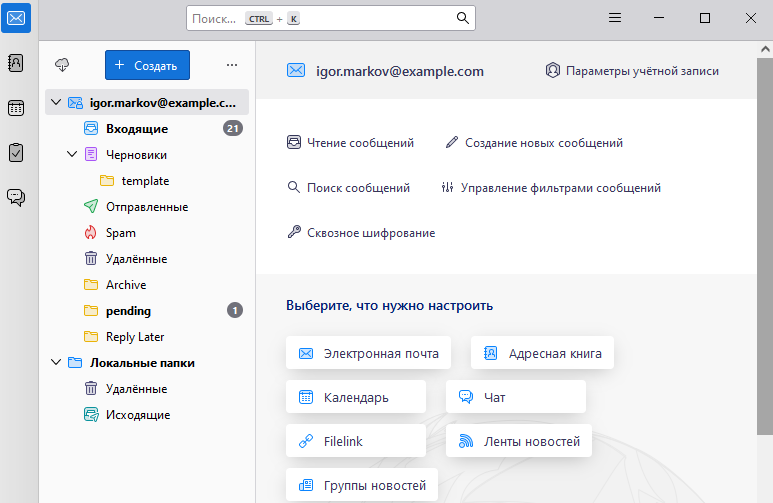 Календари синхронизируются по протоколу CalDAV.
