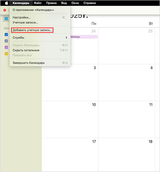Чтобы синхронизировать календари на macOS, настройте синхронизацию с устройством: