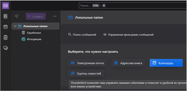 Перейдите на вкладку Почта и в разделе Выберите, что нужно настроить нажмите Календарь.