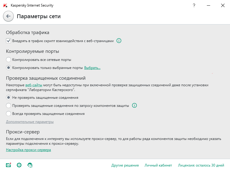Отключение проверки HTTPS-соединения в Kaspersky Internet Security