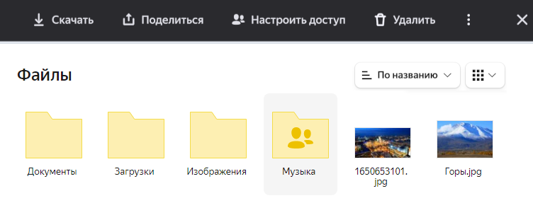 Чтобы посмотреть, у кого есть доступ к папке, выберите папку и на верхней панели слева нажмите