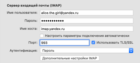 IMAP; - Сервер входящей почты —