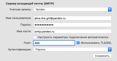 - Имя пользователя — ваш логин на Яндексе, например, «alice.the.girl» (часть адреса до знака