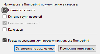 Если вы хотите всегда использовать для отправки писем программу Mozilla Thunderbird, в окне Интеграция с системой нажмите кнопку Установить по умолчанию.