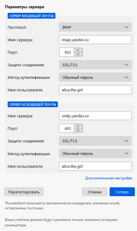 Подробнее о том, как проверить настройки серверов в разных почтовых программах, см. в разделе Шифрование передаваемых данных.
