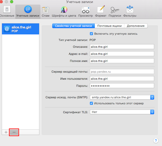Выберите учетную запись, работающую по протоколу POP.