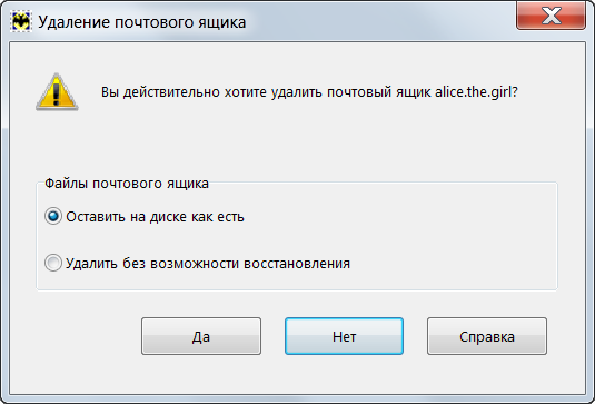 Выберите вариант удаления файлов почтового ящика.