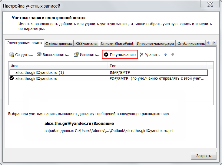 Выберите старую учетную запись, работающую по POP3.