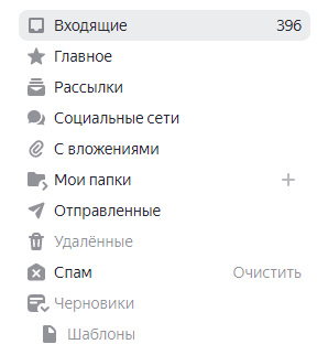 Яндекс Почта упрощает работу с разными категориями писем и выделяет их в системные папки. Письма, которые попадают в Рассылки и Социальные сети, лежат только в этих папках и не дублируются в других.