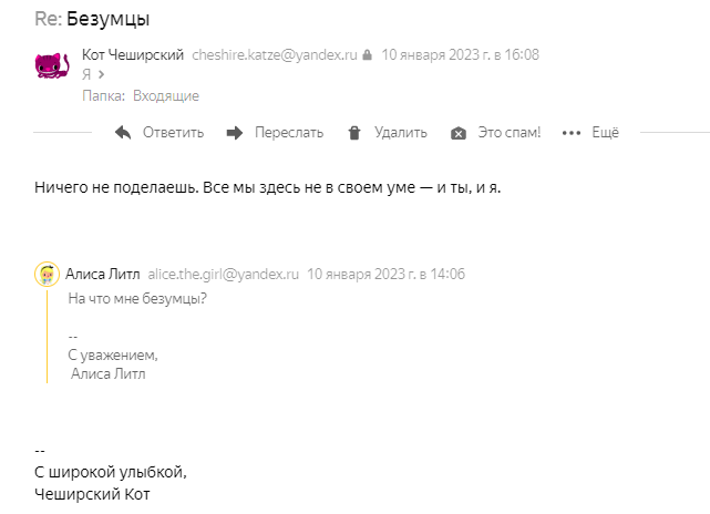 Имя, портрет и адрес ваши собеседники увидят рядом с полем От кого. Подпись будет отображаться внизу всего письма или после вашего ответа. Время отправки и получения письма, которое отображается в вашем ящике, зависит от часового пояса.