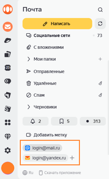 Нажмите на название ящика в левой колонке Почты, чтобы просмотреть все собранные с него письма.
