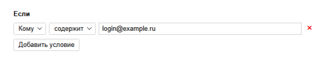 Составьте условие Если: из выпадающих списков выберите Кому и совпадает с, затем введите адрес почты, с которой собираются письма: