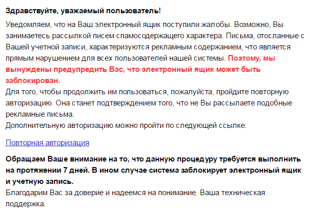 Если вы получили подобное письмо, выделите его и нажмите кнопку Это спам!, чтобы включить письмо в правила фильтрации спама.