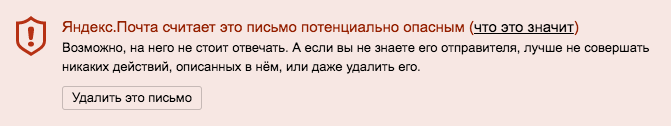 Яндекс Почта помечает все фишинговые письма специальным предупреждением:
