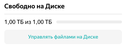 (в iOS — Настройки). - В разделе Свободно на Диске нажмите Управлять файлами на Диске.