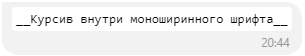 `__Курсив внутри моноширинного шрифта__` |
