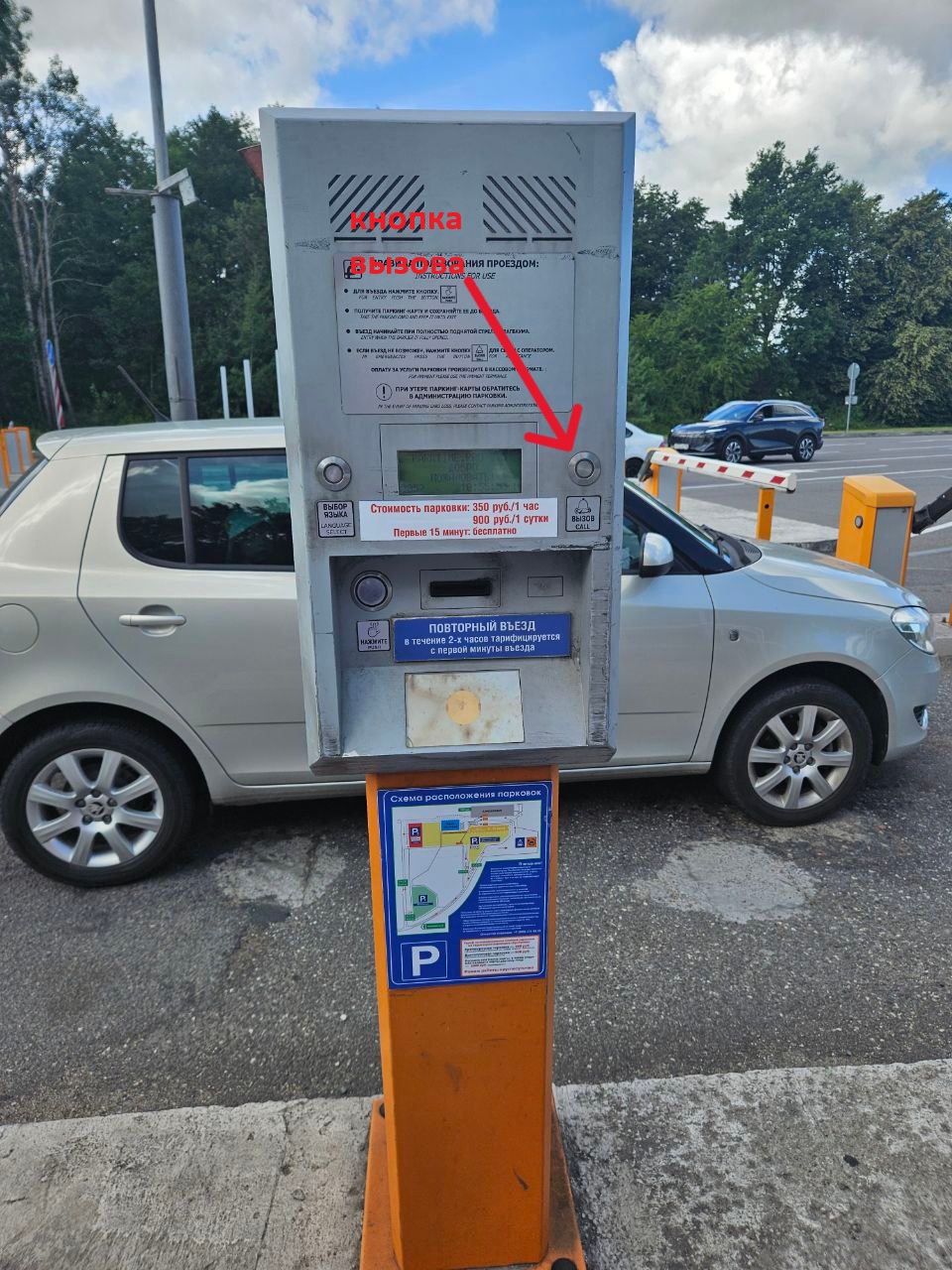 Если шлагбаум не открылся, нажмите кнопку вызова оператора парковки, скажите, что вы на автомобиле Драйва.
