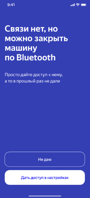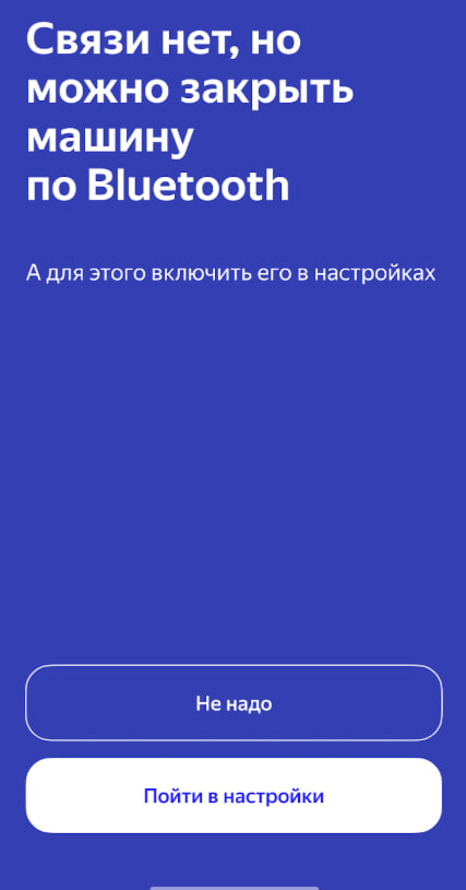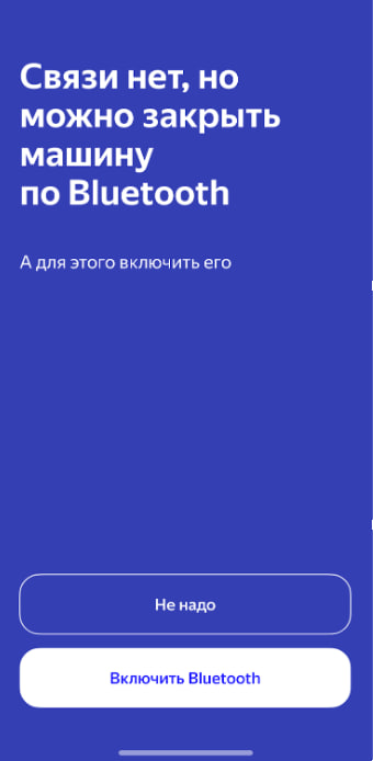 Если при попытке закрыть машину/перевести в режим ожидания там, где нет связи с авто, приложение предложит закрыть ее по Bluetooth.
